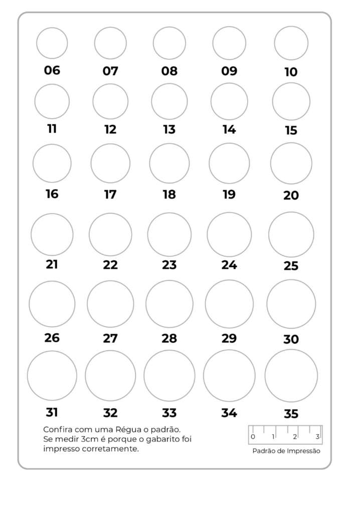 1. Faça a impressão do arquivo em uma folha A4, conferindo se a medida está certa,